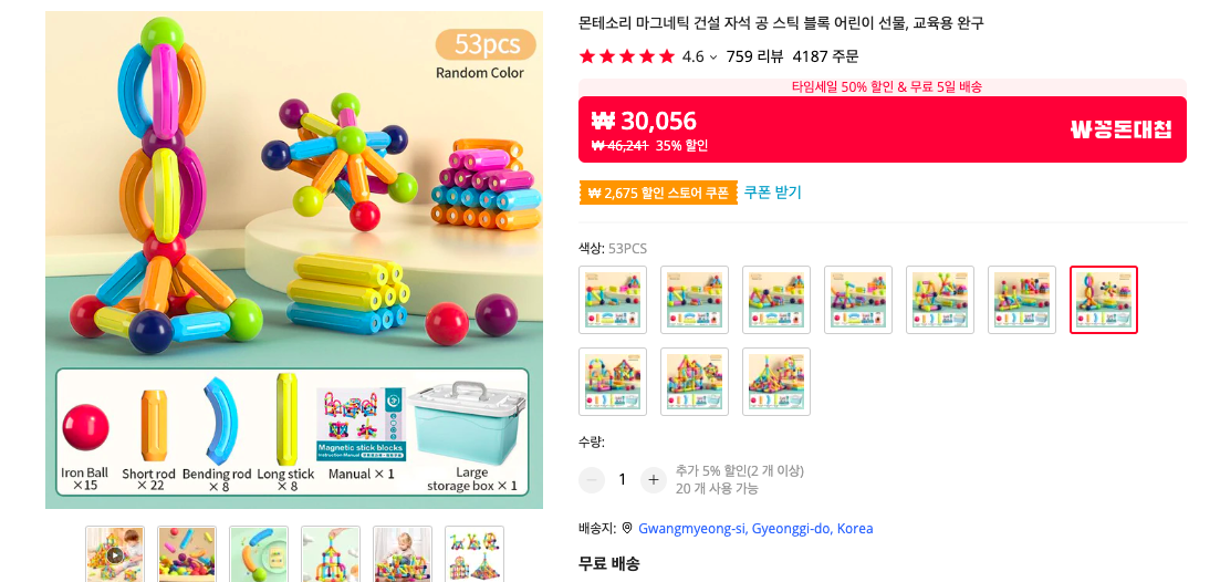 이와 관련된 장난감이 있으면 좋겠다 싶어 찾아보던 중